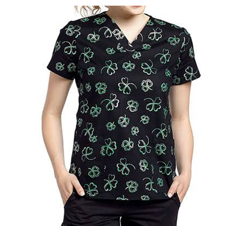 2025 dernier imprimé col en v doux médical gommages hôpital imprimé gommages infirmière uniforme unisexe imprimé fleur clinique uniforme femmes