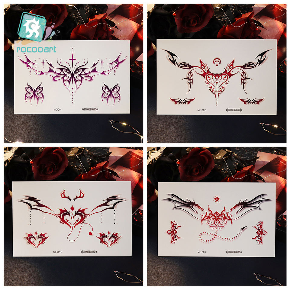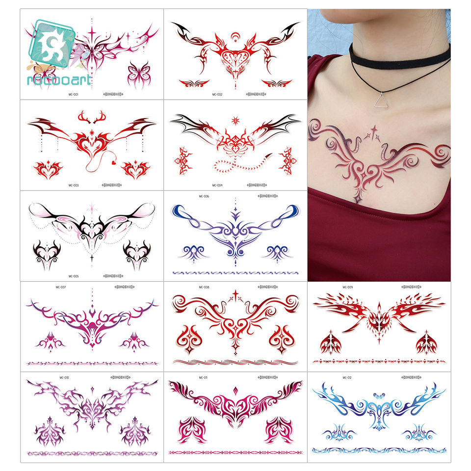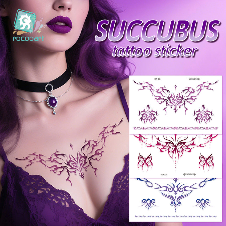 2025 derniers tatouages temporaires colorés réalistes Art corporel fleur épaule cou succube taille clavicule tatouages temporaires