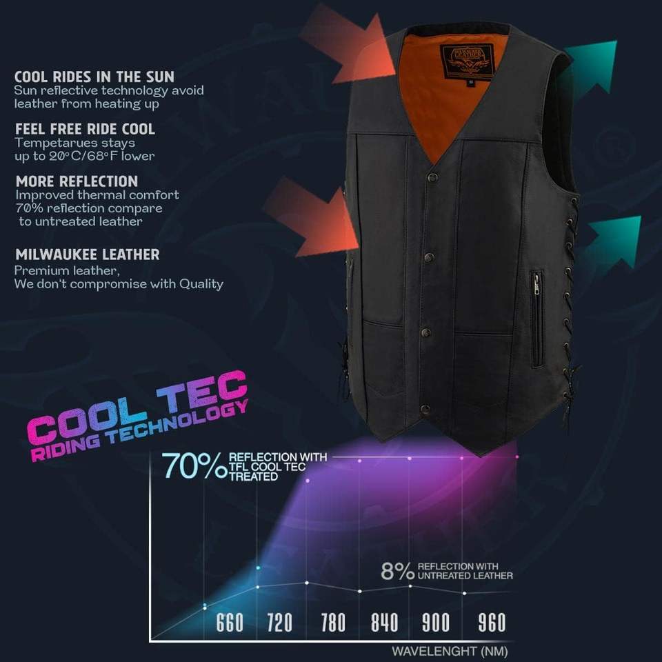 Gilet de moto en cuir noir premium 10 poches pour homme 2025 Leather MLM3541 Cool-Tec – Vêtement de course automobile en cuir