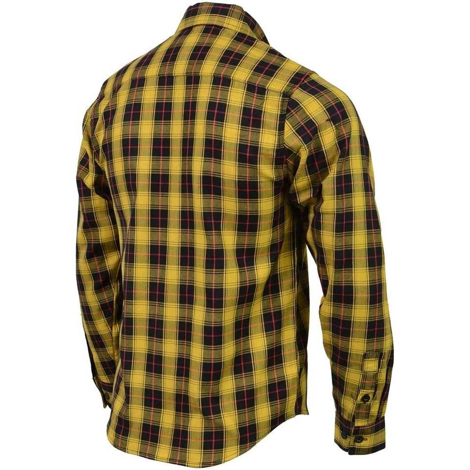 2025 Leather MNG11666 Men's Long Sleeve Cotton Flannel Shirt Black and Red with Yellow Accents