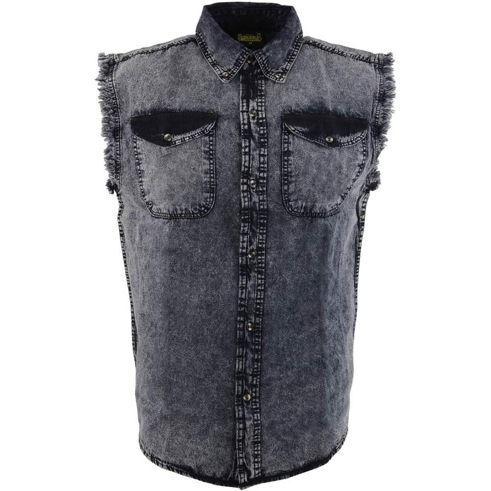 2025 Leather Men's Classic Casual Flannel Shirt Button-Down with Cutoff Frayed Sleeves Vests & Waistcoats