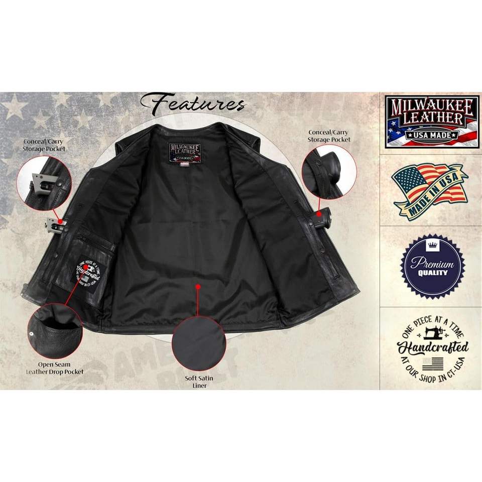 2025 Leather Men's Premium Black Vest USA MADE for Motorcycle & Auto Racing Wear Rider Biker Style MLVSM