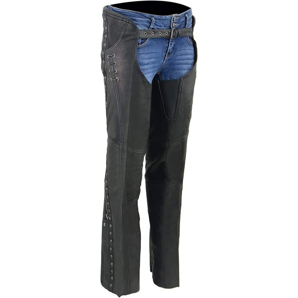 2025 Leather Women's Lightweight Premium Goat Skin Motorcycle Chaps Black W/Accent Lacing-MLL6535