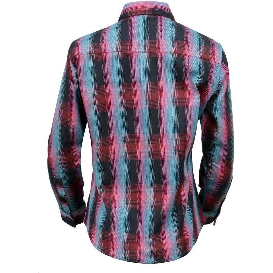 2025 Leather Women's Long Sleeve Cotton Flannel Shirt Black and Pink with Blue 3X-Large-Women's Blouses & Shirts