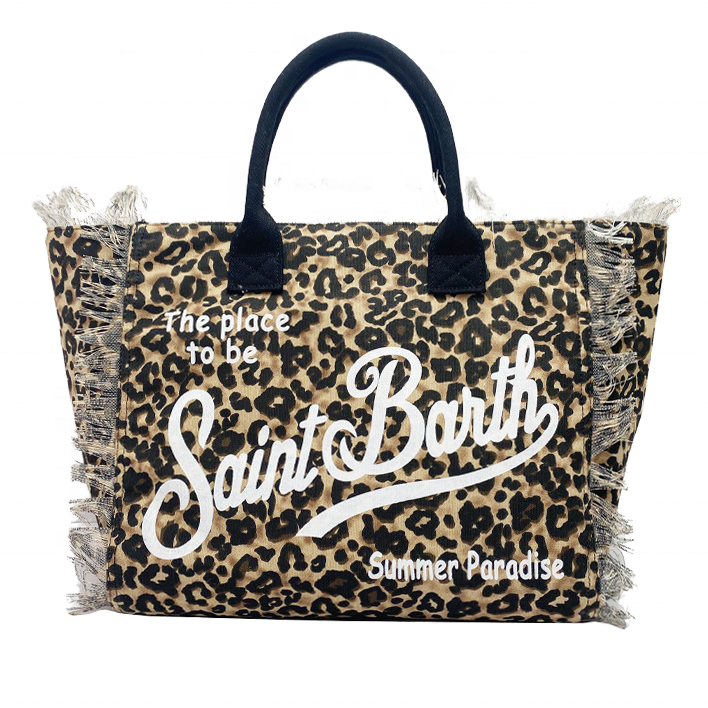 Sac fourre-tout en toile à imprimé léopard mignon 2025, sac à bandoulière, ambiance estivale, sac de plage, sac à main décontracté, sac hobo bohème avec pompons