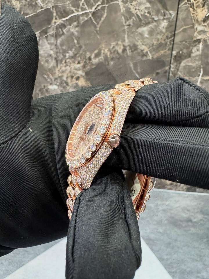 Montre mécanique unisexe en acier inoxydable avec mouvement mécanique, entièrement sertie de diamants en moissanite VVS1, design personnalisé de luxe de haute qualité 2025