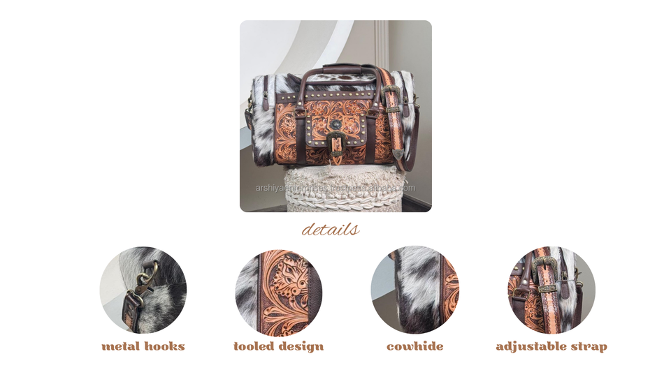 Product name:Hand Tooled Leather Cowhide Duffle Bag