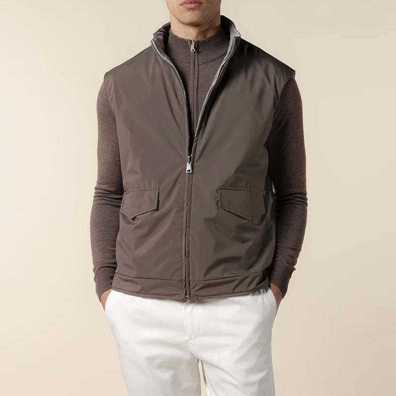 Gilet de luxe réversible zippé pour homme 2025 – Vente en gros, logo personnalisé, imperméable, respirant, tendance, chauffe-corps