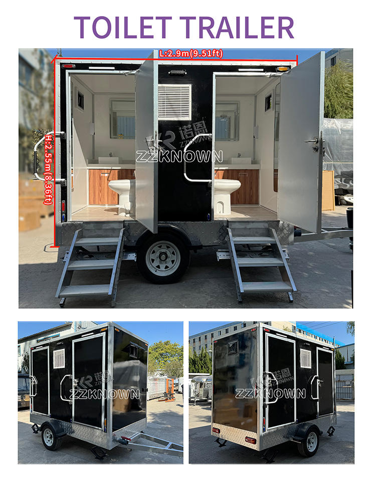 Toilettes mobiles hydrauliques électroniques de luxe portables VIP 2025 de haute qualité, extensibles et démontables, avec roues de remorque pour parcs