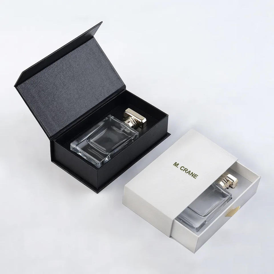 Boîte cadeau de parfum rectangulaire de luxe 2025, boîte cadeau de parfum exquise, boîte cadeau de parfum créative à rabat, doublure en éponge, laminage mat, matériaux recyclés, papier