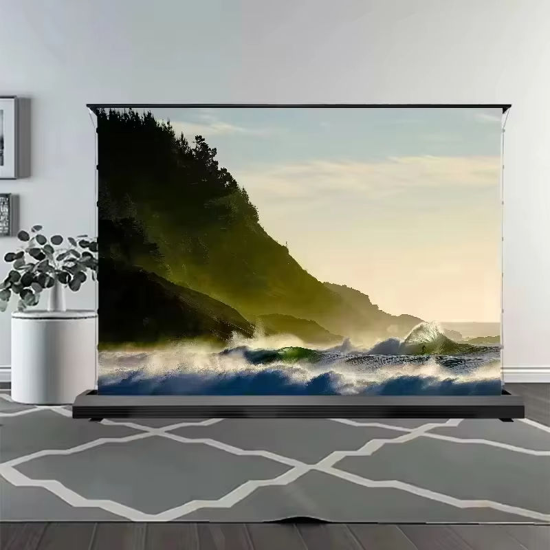 2025 MAX 100 "~ 150" écran Alr écran de projection montant au sol système vidéo home cinéma motorisé écrans de Projection de théâtre longs