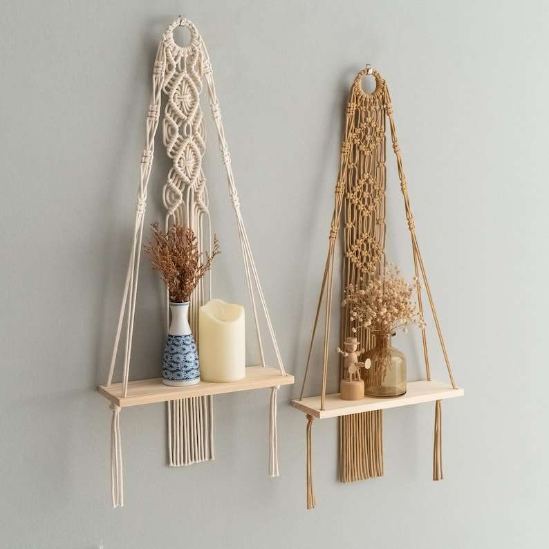 Étagère suspendue en macramé 2025 pour décoration murale et rangement Boho