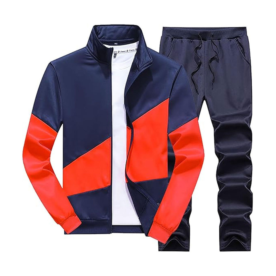 Ensemble de survêtement en molleton respirant imprimé à blocs de couleur pour homme 2025, 2 pièces, veste à col montant zippé quart, pantalon de survêtement, entraînement d'hiver