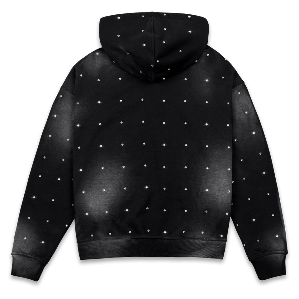 2025 hommes strass acide lavage à capuche noir Streetwear pull sweat avec cristal goujon conception mode Hip Hop sweat à capuche décontracté