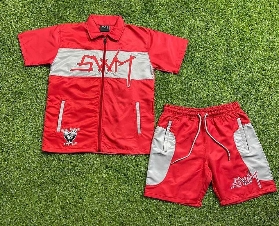 2025 hommes ensembles deux pièces personnalisé coupe-vent Shorts et veste survêtement réfléchissant fermeture éclair en Nylon deux pièces coupe-vent ensemble court