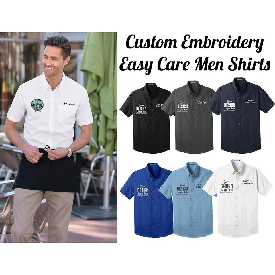 2025 hommes W101 broderie personnalisée Logo chemises sans soin popeline à manches courtes