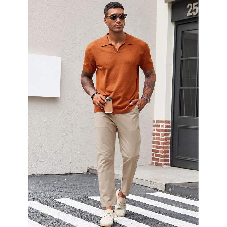 2025 hommes 100% Polyester col en V pour polos foncé tricoté Golf décontracté Slim Fit hauts avec haute à manches courtes Muscle Gym