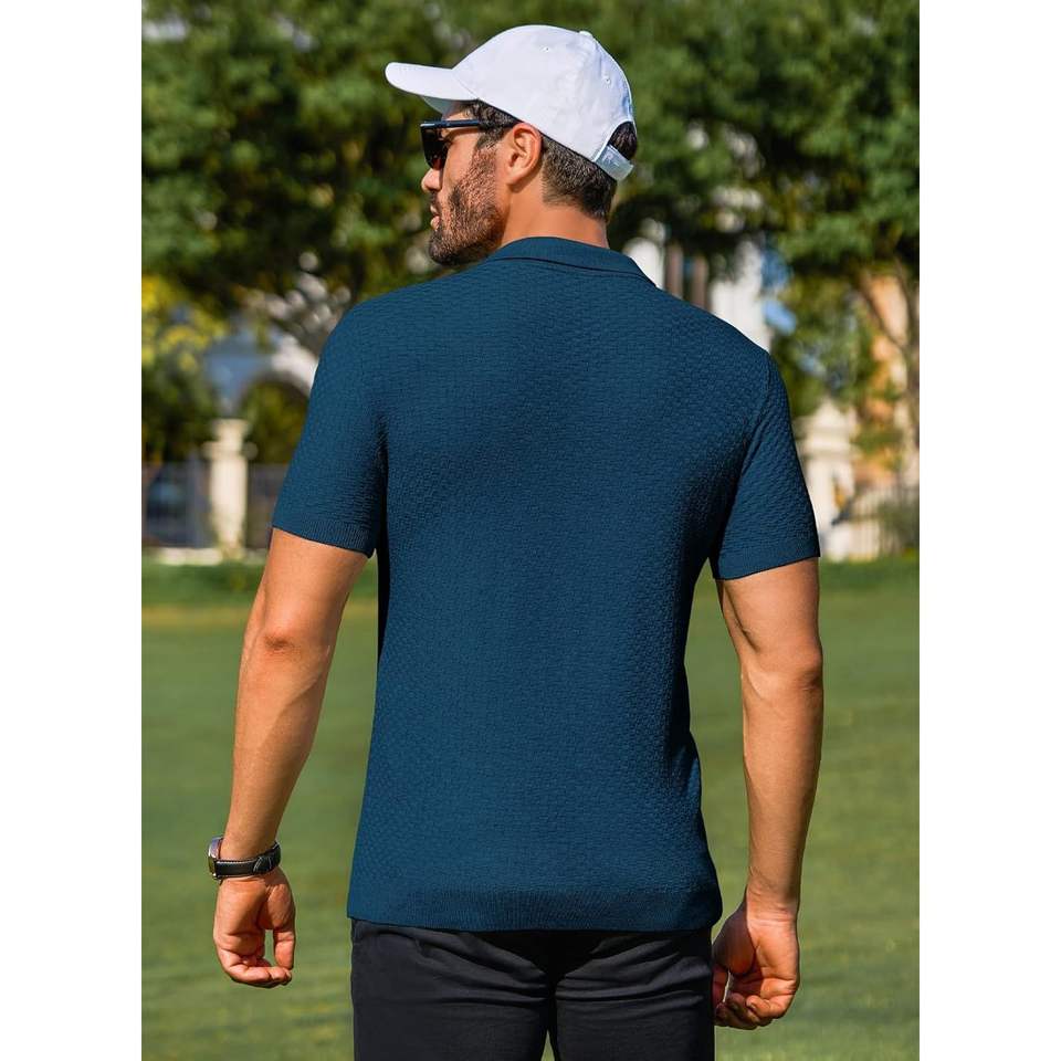 2025 hommes basique texturé T-Shirts bouton classique pour polos coupe ajustée manches courtes motif solide été Golf t-shirts