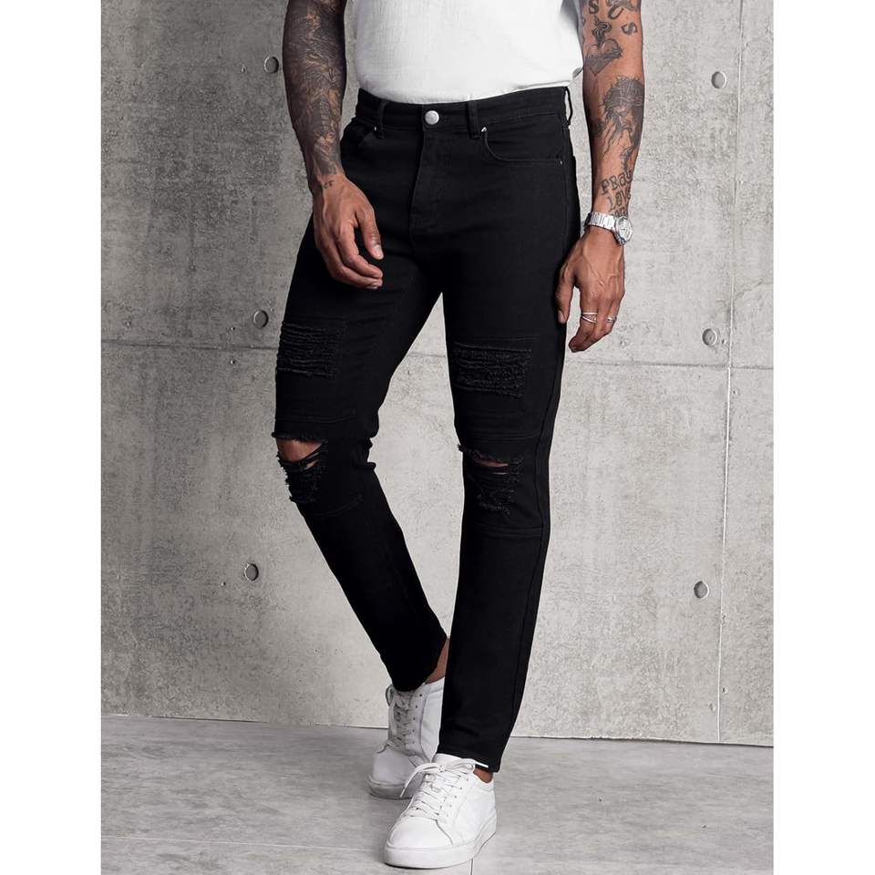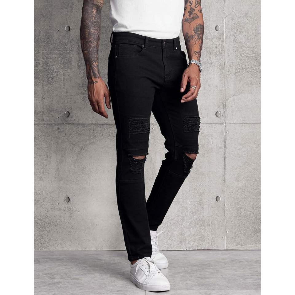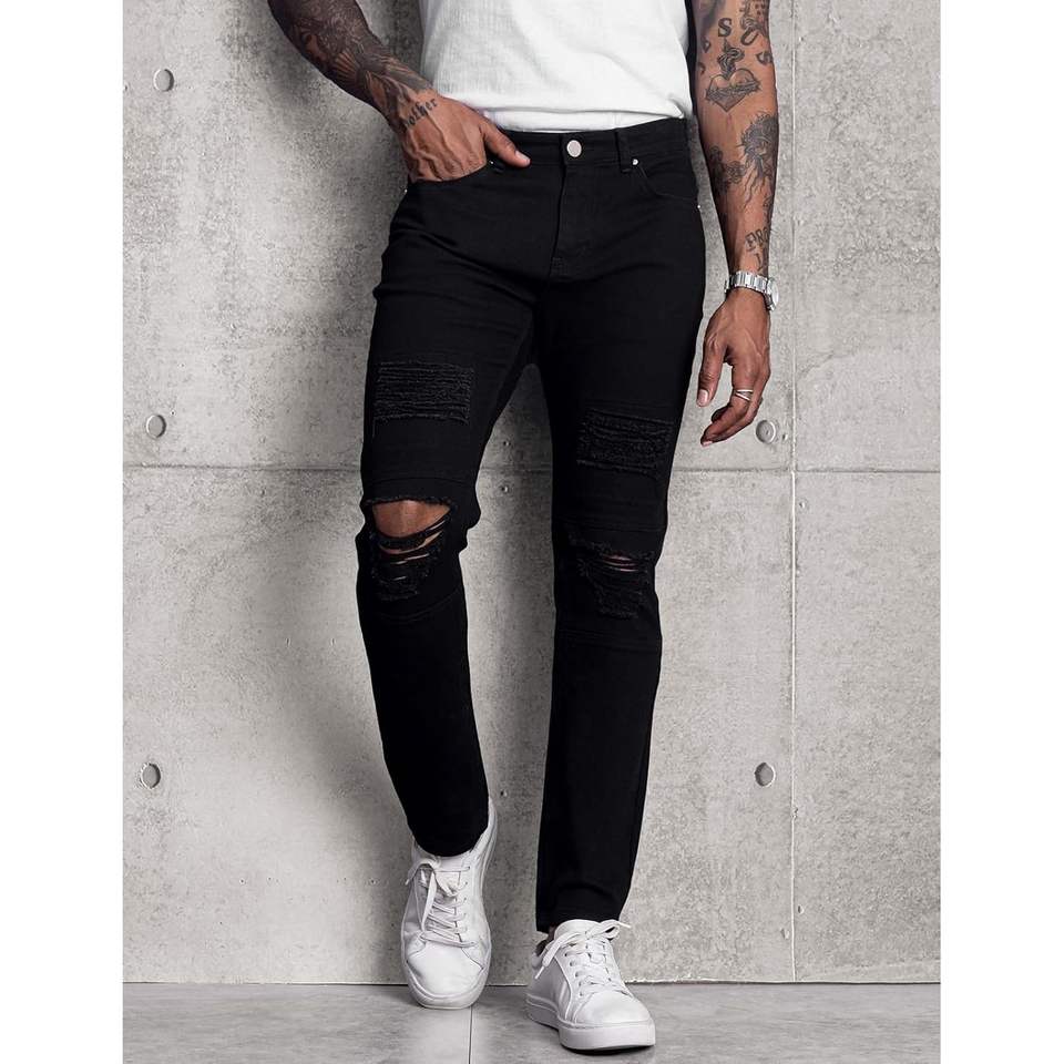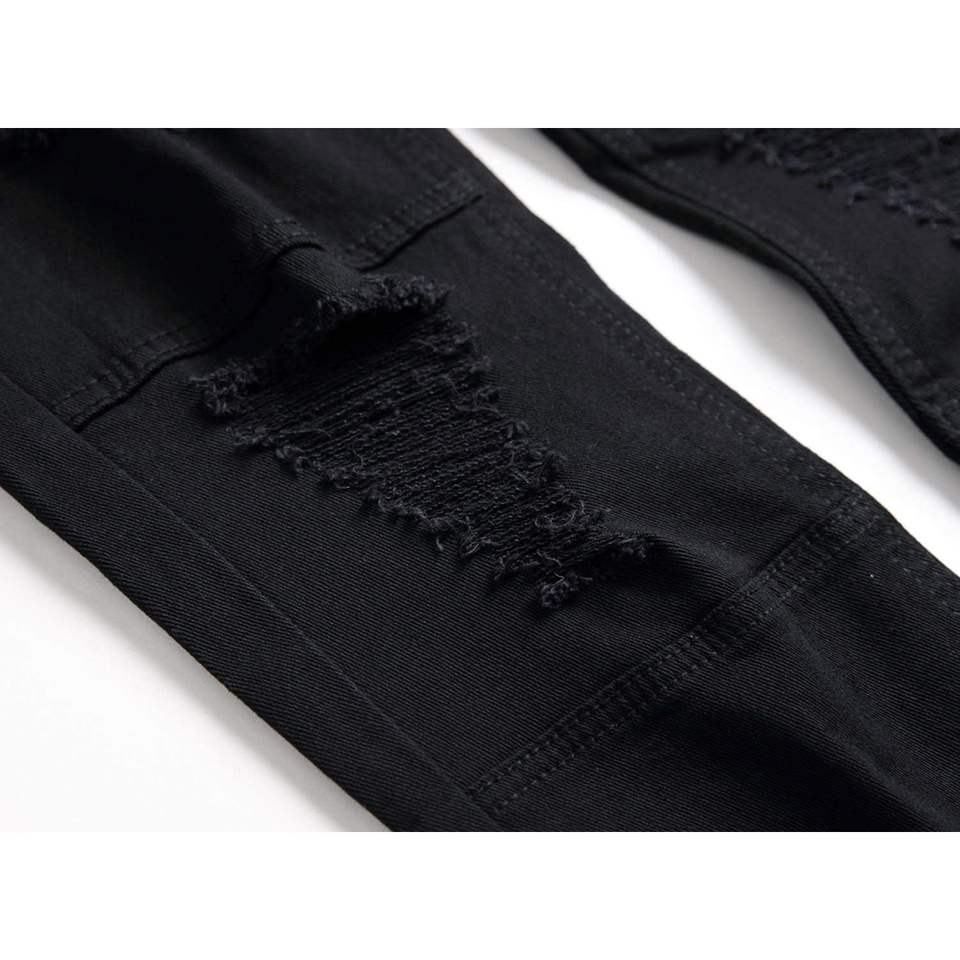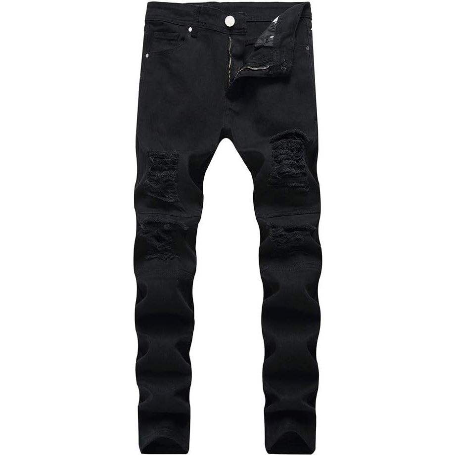 2025 hommes botte coupe extensible coupe ajustée déchiré droite Hip Hop Biker Spray Technique Vintage diamant Rivet tricoté pour l'hiver