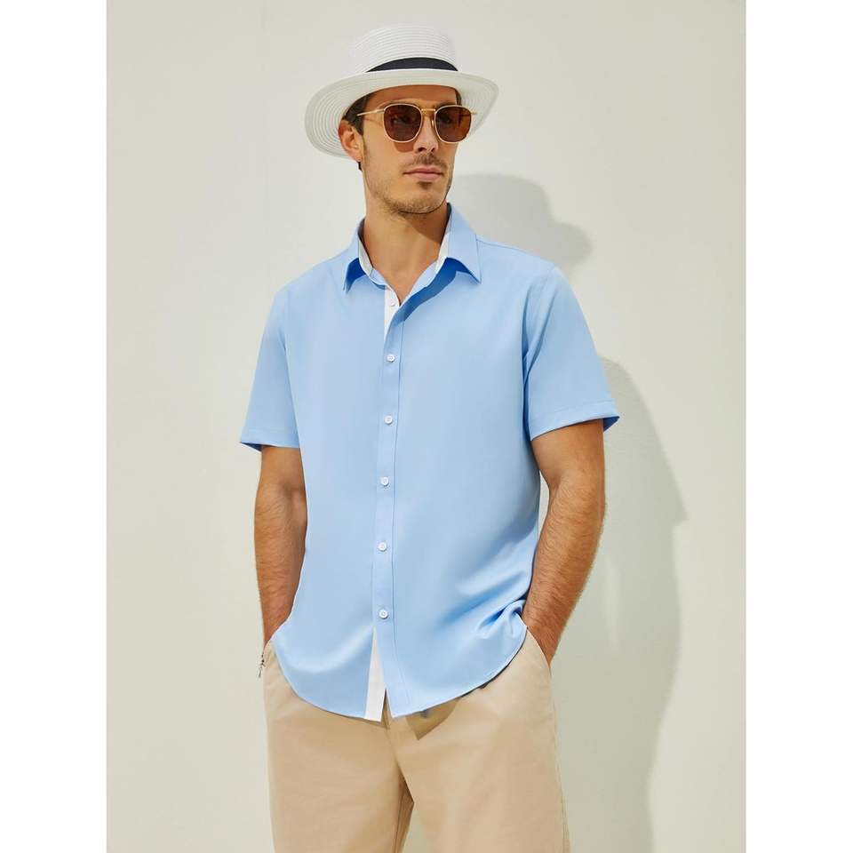 2025 chemises habillées boutonnées pour hommes 100% coton tissu Oxford à manches courtes sans plis chemise d'affaires taille XL bouclier anti-taches