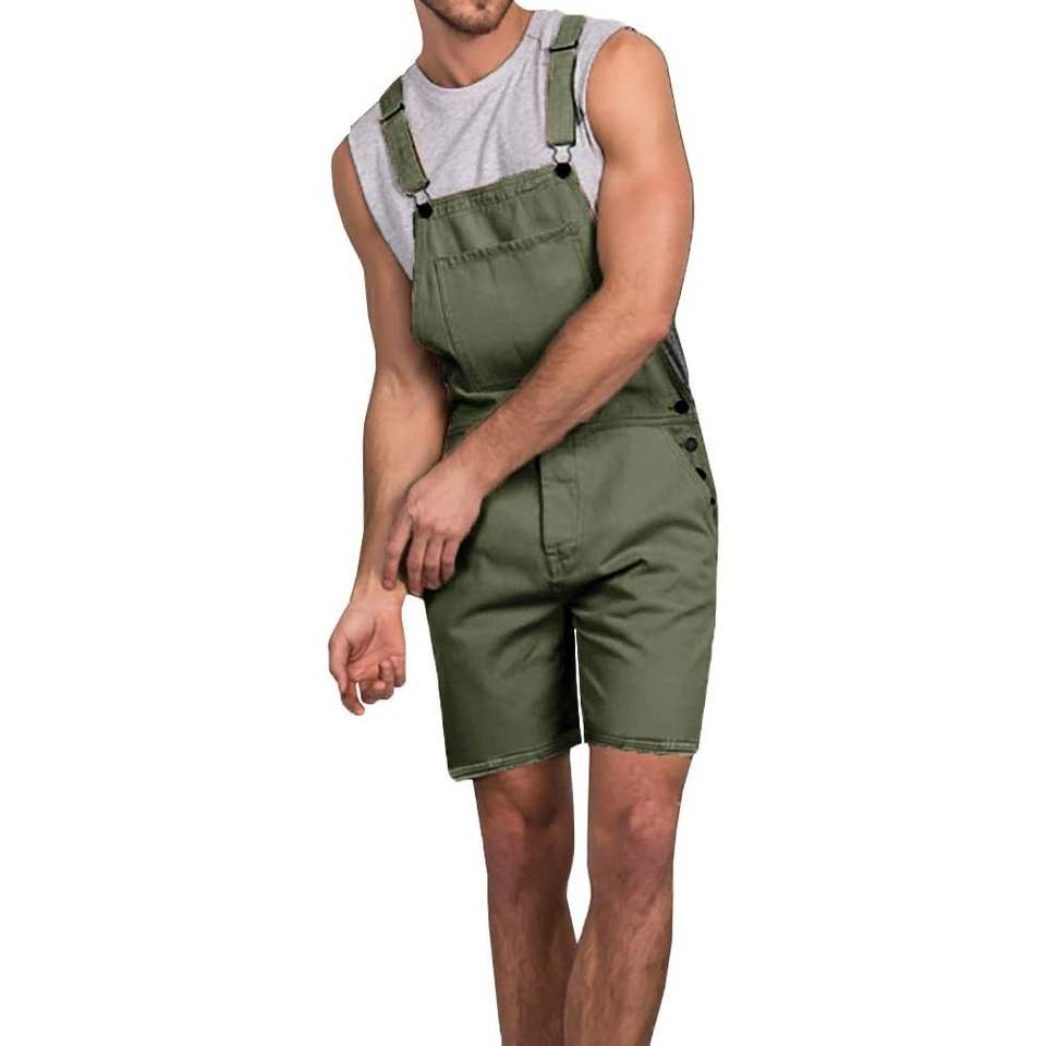 2025 Men's Casual Bib Overall Shorts Lightweight Cotton Loose Fit Denim with Walkshort Pockets Jumpersuit Rompers