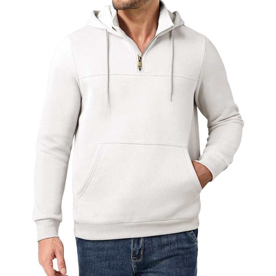 2025 Men's Casual Cotton Hoodie Drawstring Quarter Zip Pullover Sweatshirt XXS 400 Gsm Anti-Wrinkle Anti-Shrink Embroidered
