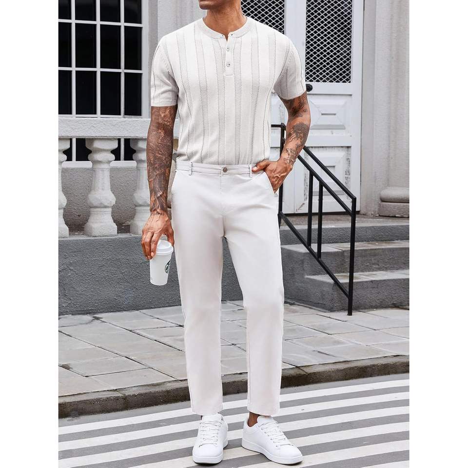 2025 Men's Casual Cotton Knit Textured Stretch Pullover Sweater Short Sleeve Henley Shirts
