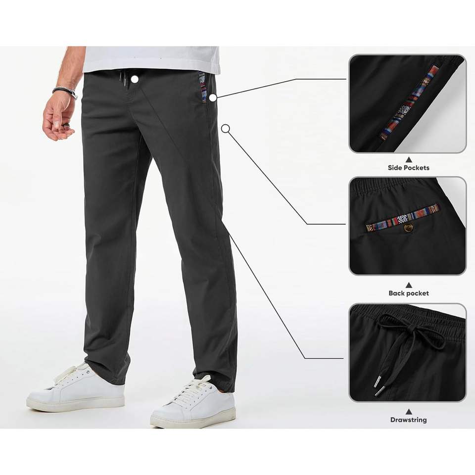 2025 Men's Casual Cotton Twill Chino Pants 100% Cotton Drawstring Elastic Waist Anti-Wrinkle with Pockets Man Trousers