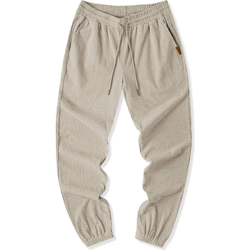 2025 Men's Casual Pants 100% Cotton Waffle Textured Drawstring Joggers with Stretch Elastic Waist Zipper Decorations Size 6XL