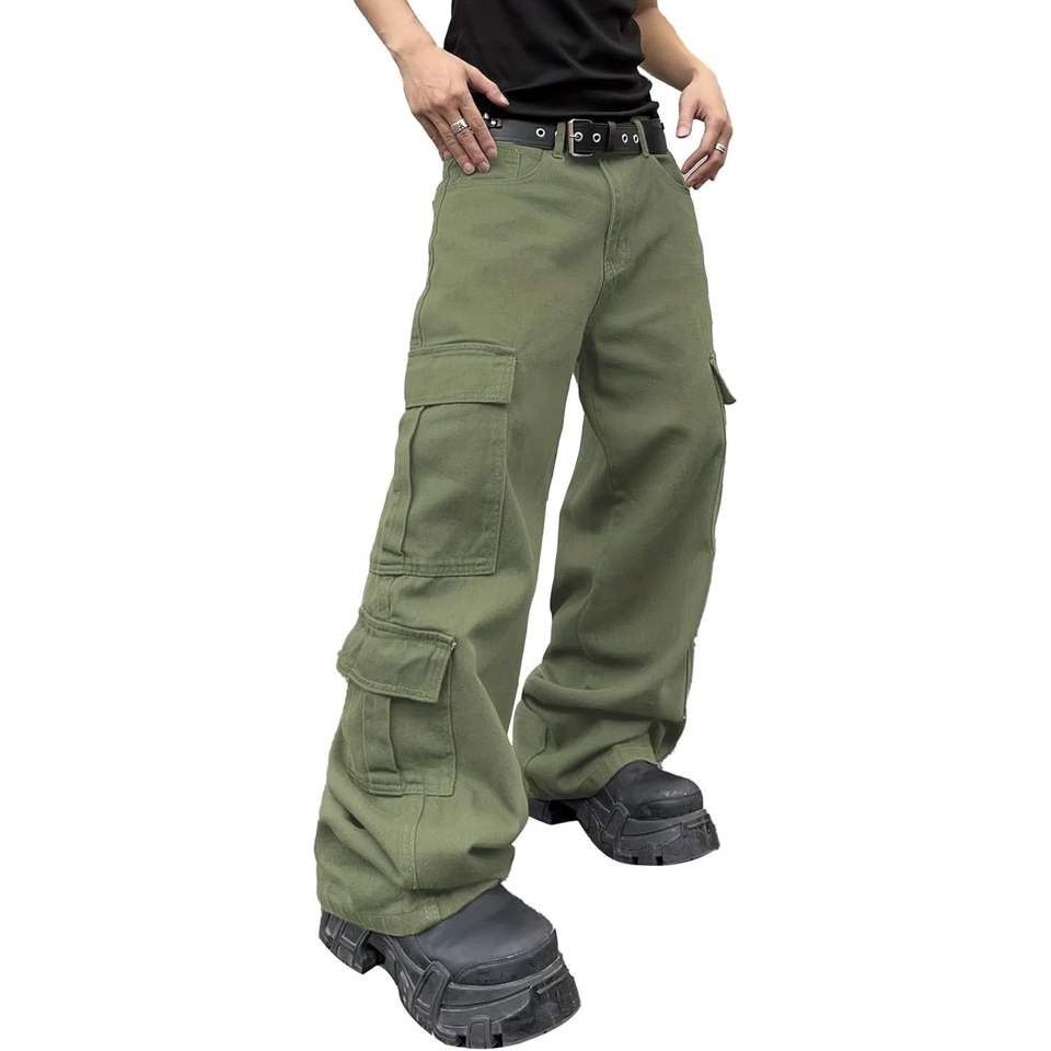 2025 Men's Casual Streetwear Y2K Fashion Baggy Cargo Jeans with Pockets Wide Leg Skater Denim Pants