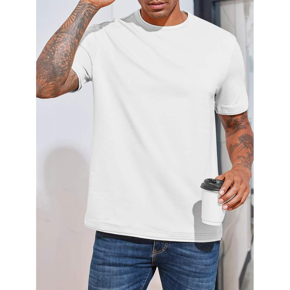 2025 Men's Casual Summer Beach Tops 240g Fabric Short Sleeve Slim Fit Crew Neck T-Shirts Screen Compressed Any