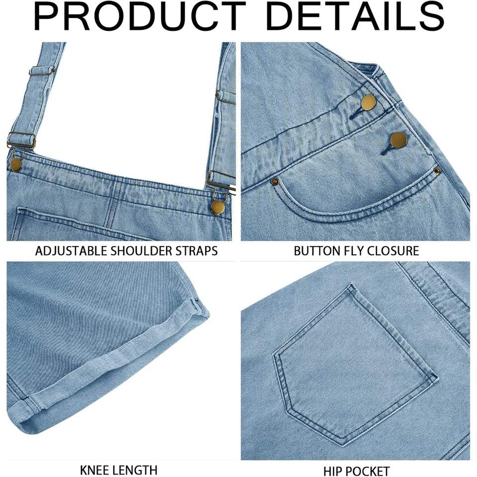 2025 Men's Casual Summer Denim Shorts Loose Fit Bib Overall Jean Romper Button Pockets Hip Hop Y2K Style Walkshorts Jumpsuit