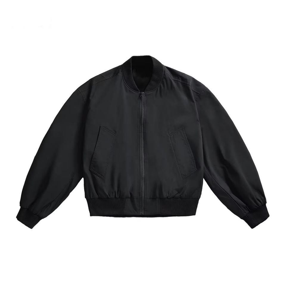 Blouson Bomber Oversize Homme Cleanfit 2025 – Manteau Décontracté Minimaliste Ample en Satin Bleu Marine Foncé Style Streetwear Automne