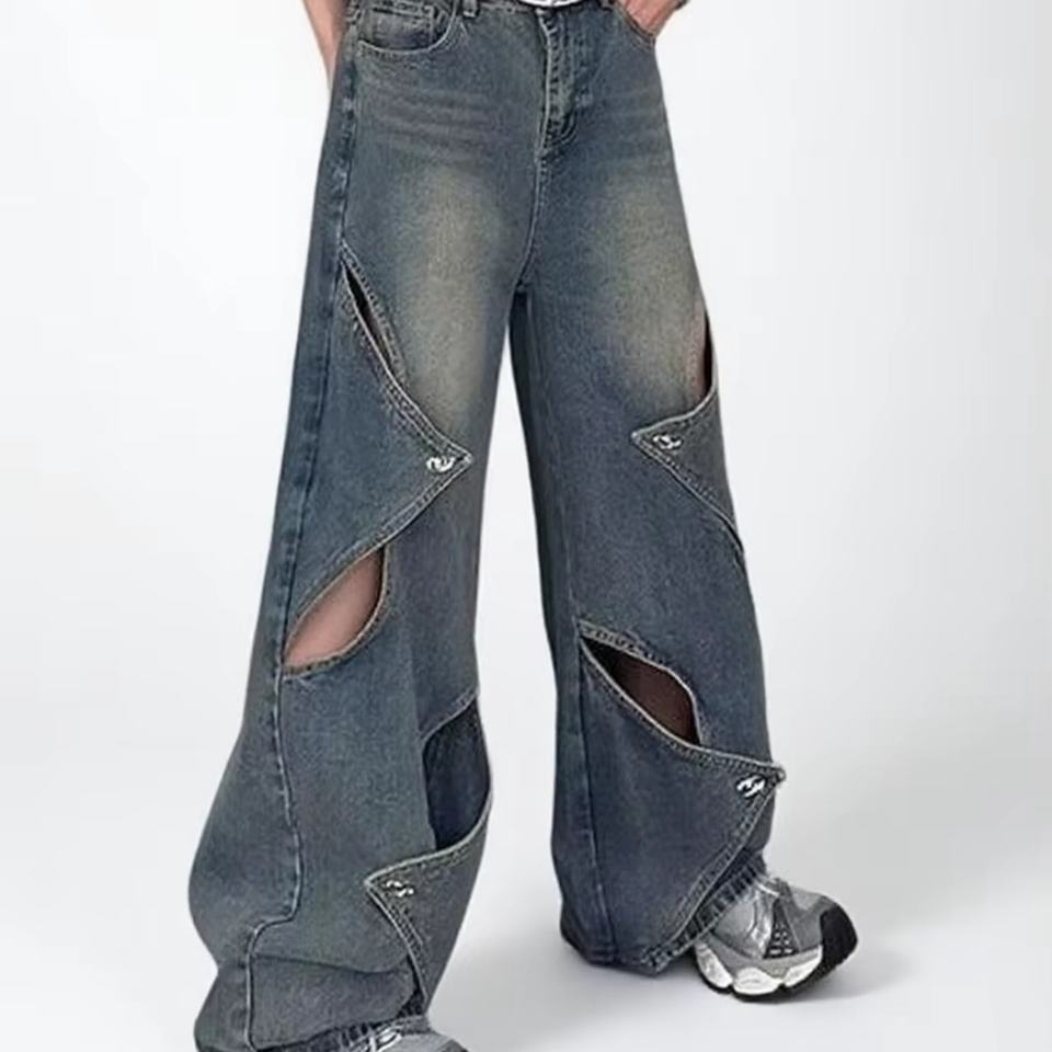 Jeans baggy déchirés pour hommes 2025, patchwork ajouré, Y2K, hip hop, pantalon en denim surdimensionné à jambes larges, streetwear tendance