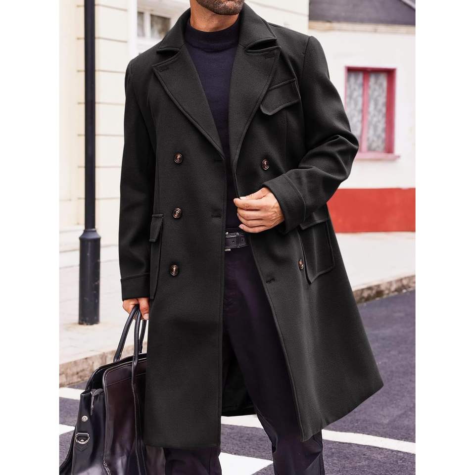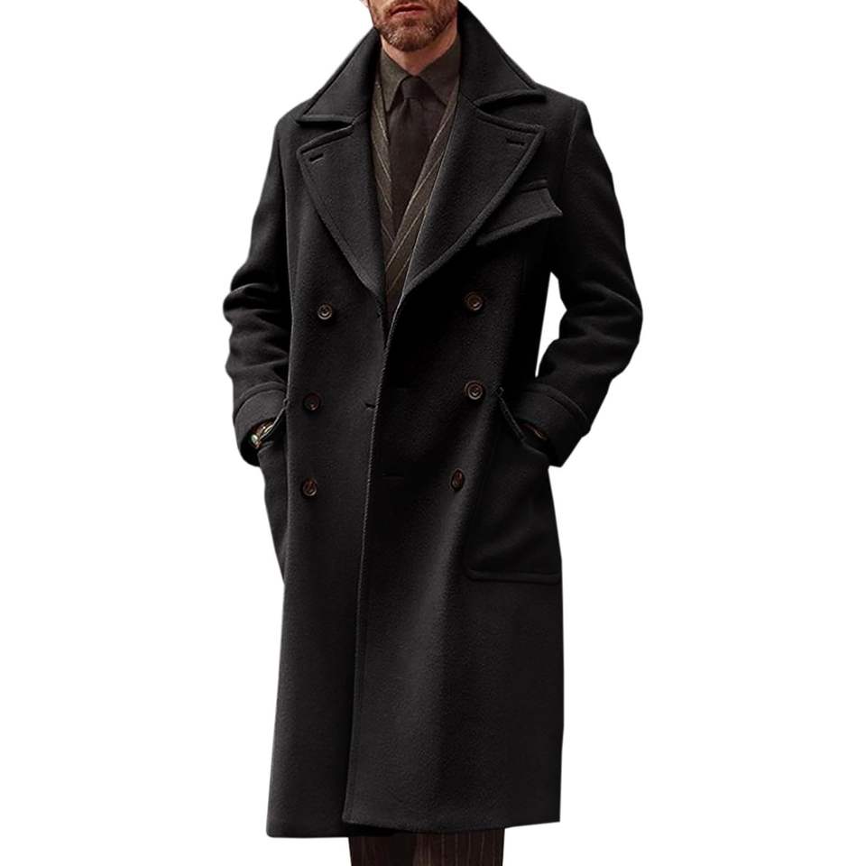 2025 hommes Double boutonnage Trench Coat encoche revers caban coton remplissage imperméable laine mélange décontracté Long pardessus grande taille