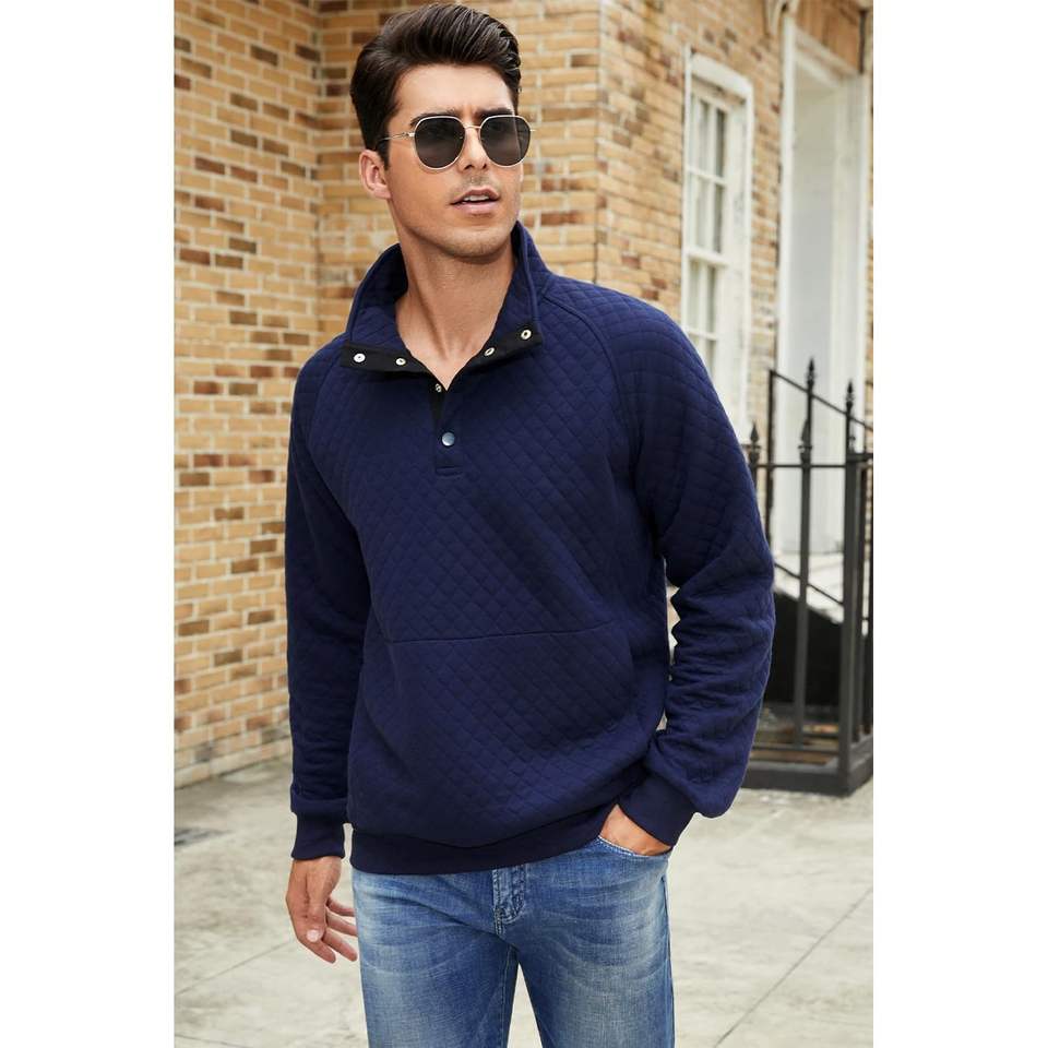 JMIERR sweat-shirt matelassé à 1/4 de boutonnage, col rond pour homme, poches kangourou, chaud, 3,53 oz, ASIN B0C8GCSBHD