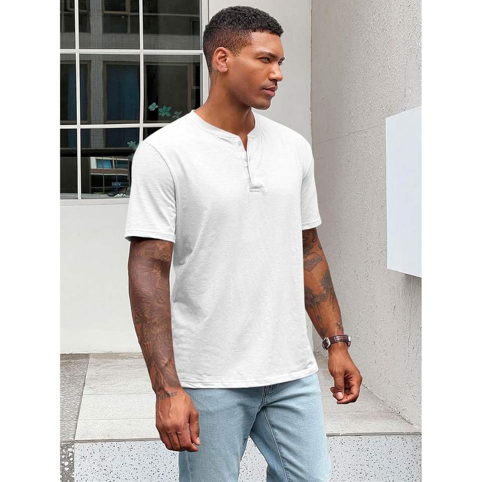 2025 Men's Henley Slim Fit Summer Casual Button Short Sleeves Stretch Comfort T-Shirt