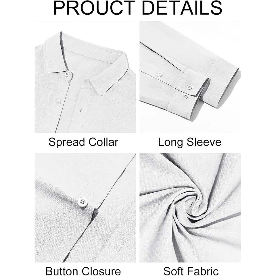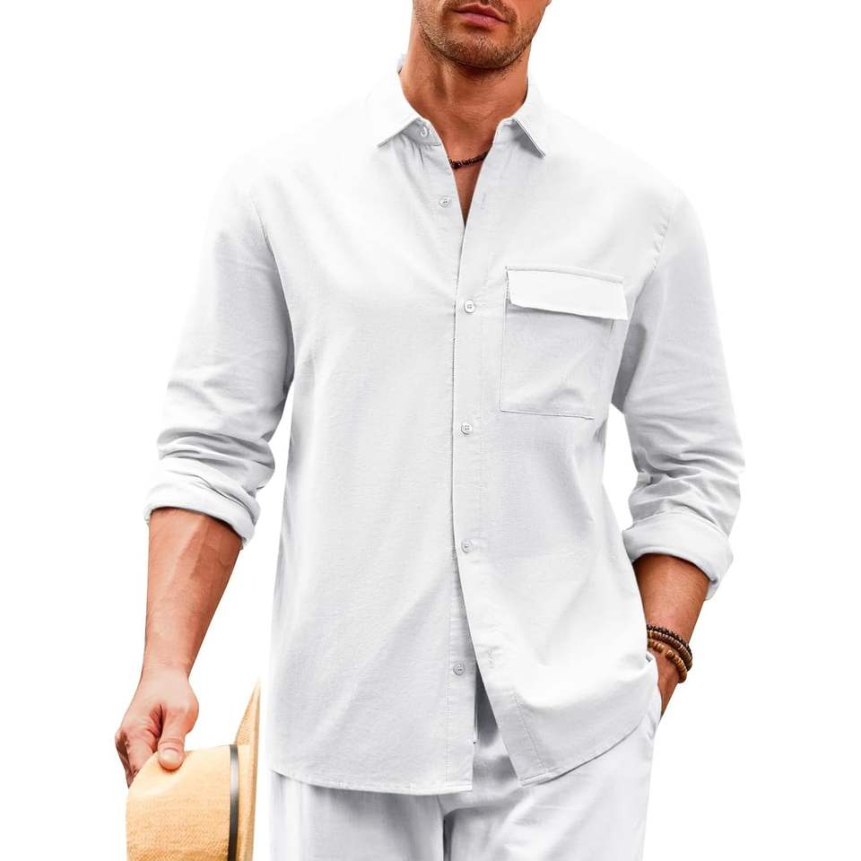 2025 Men's Linen Shirt Casual Long Sleeve Button Down 100% Cotton Untucked Summer Beach Top with Pocket Size 6XL