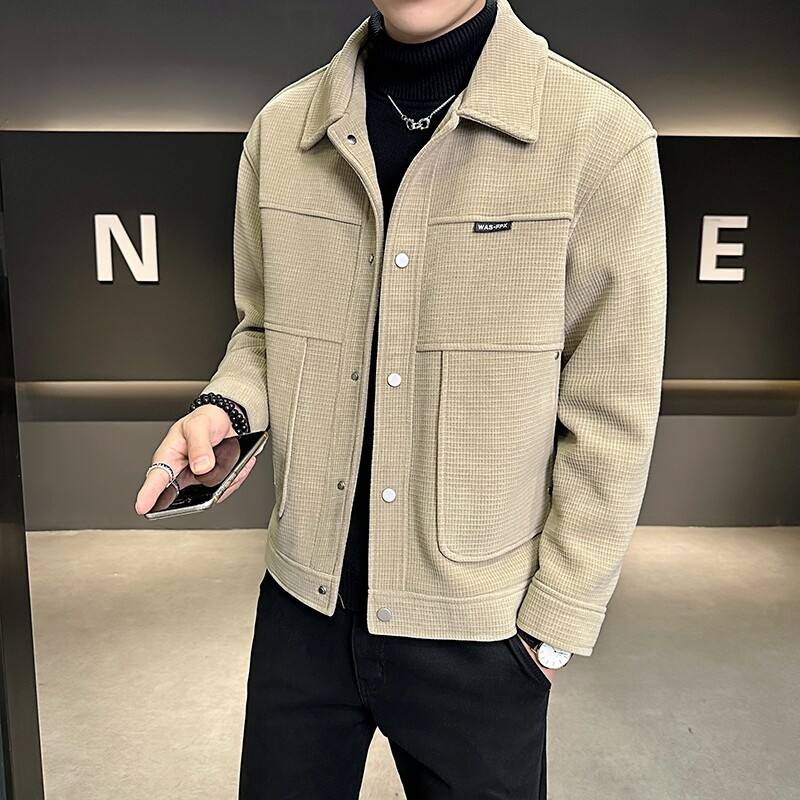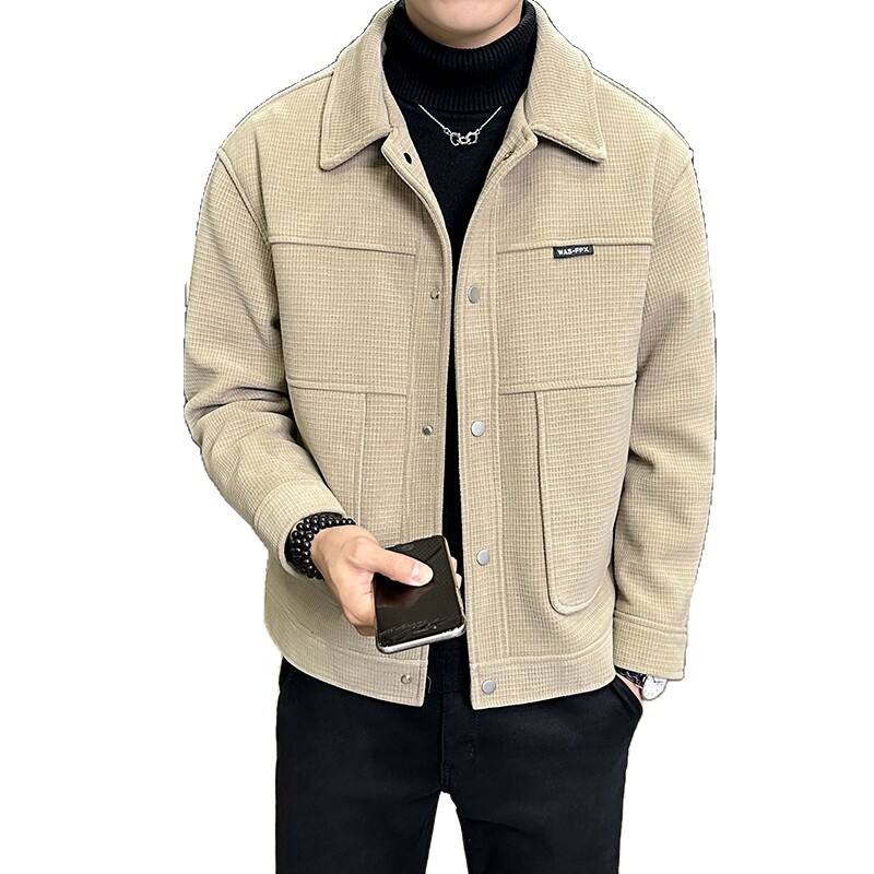 Manteau Long Homme 2025 en Laine Mélangée avec Revers Crantés, Coupe Décontractée, Vêtement d'Extérieur Tweed Lourd pour Automne Hiver
