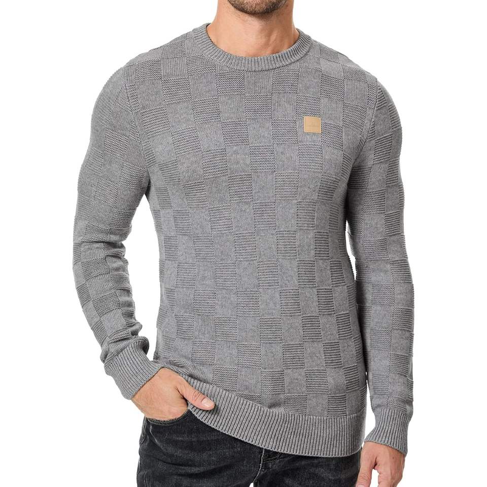 2025 hommes surdimensionné col rond cachemire pull décontracté automne à carreaux à manches longues tricot avec décoration imprimée