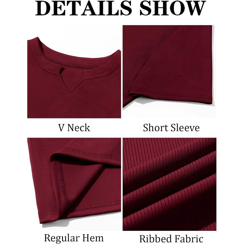 2025 hommes côtelé col en v Muscle haut coupe ajustée décontracté Stretch à manches courtes T-Shirts pour entraînement gymnastique vêtements