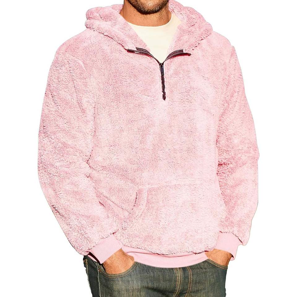 2025 Men's Sherpa Fleece Pullover Quarter Zip Casual Sweatshirt Fall Winter Warm Sweatshirt 3D Embroidery Solid Pattern XXS