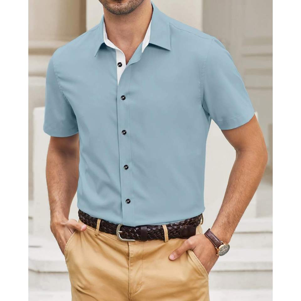 2025 hommes coupe ajustée 100% coton décontracté boutonné robe chemise sans plis simple boutonnage à manches courtes taille 6XL ODM approvisionnement