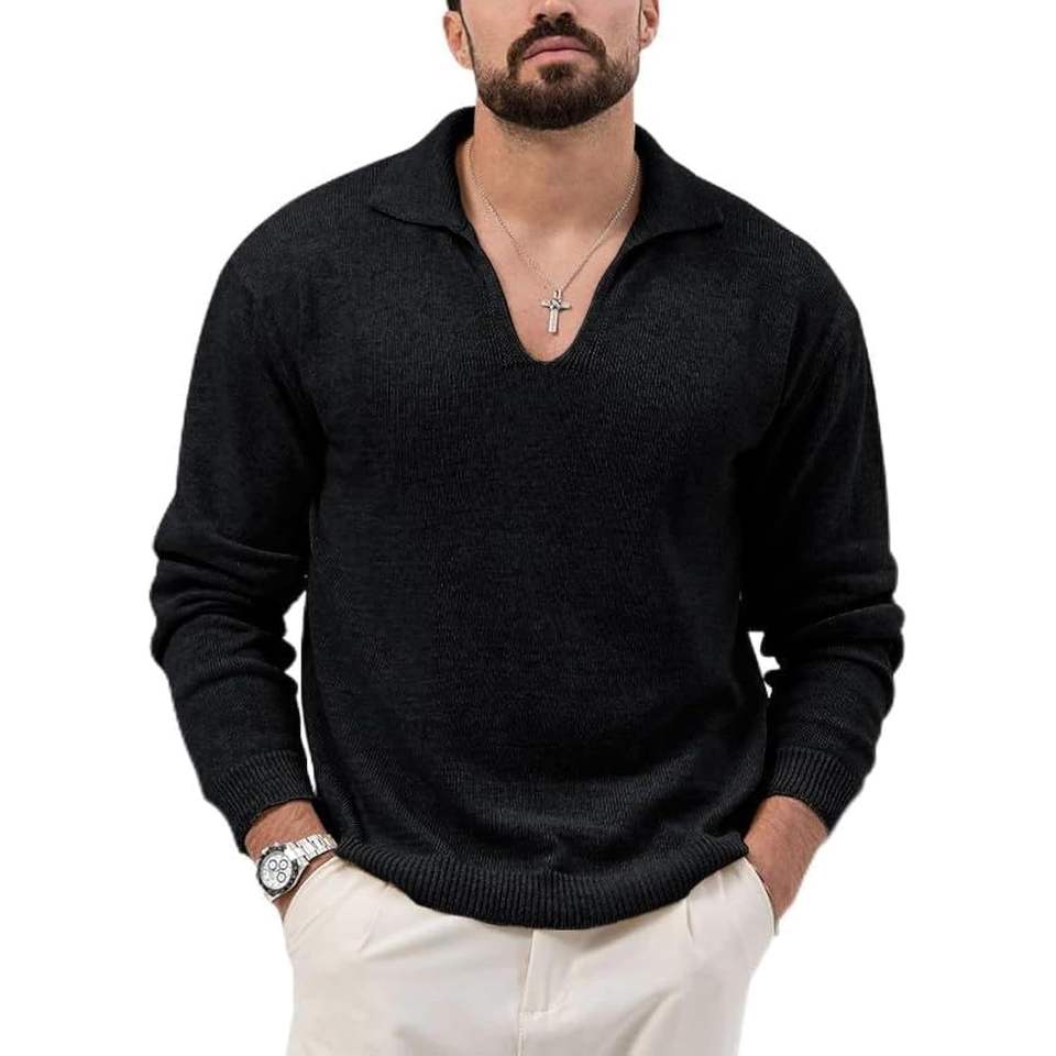 2025 hommes col en V côtelé thermique pull léger doux tricot pour Polo pull avec motif imprimé hiver pull court