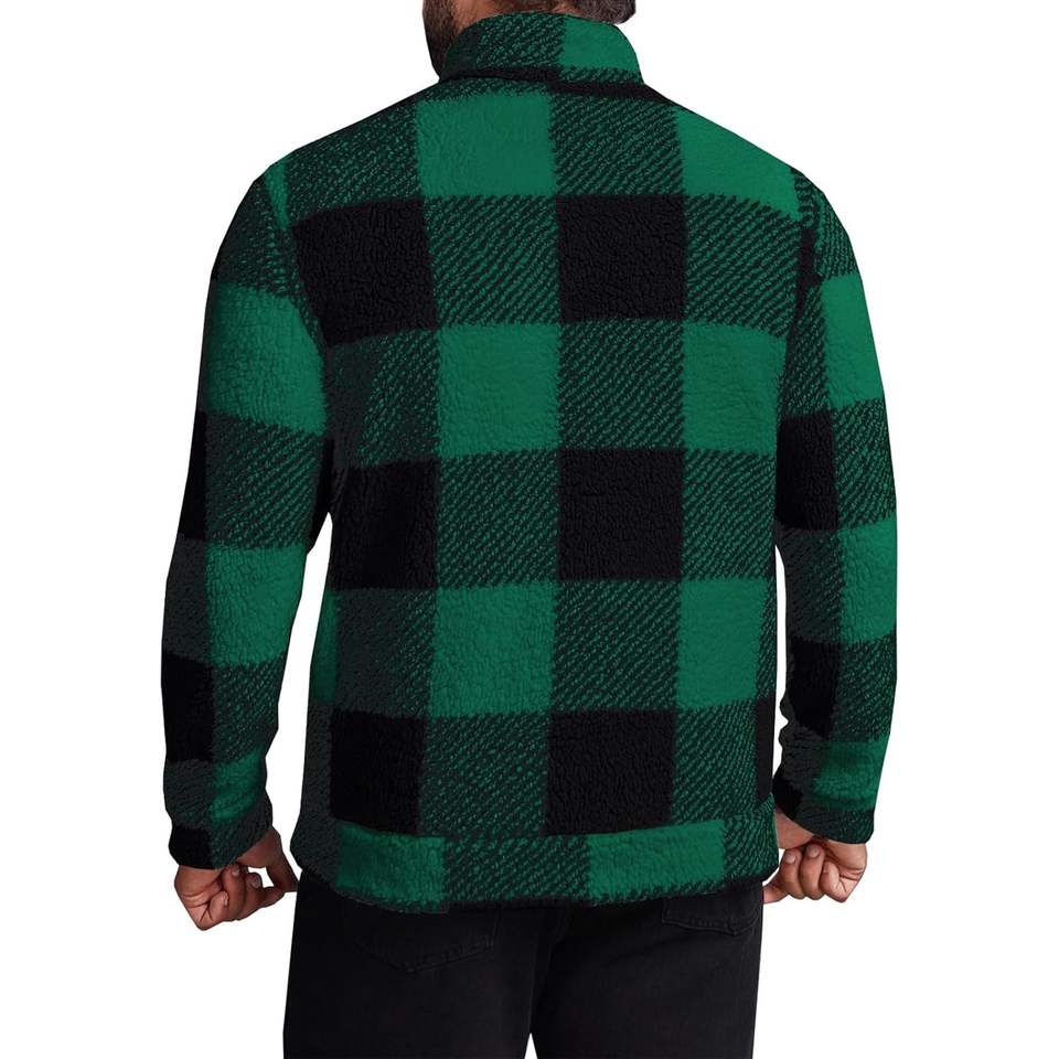 2025 Men's Winter Warm Fleece Sweatshirt Buffalo Plaid Pullover with Quarter Zip and 3D Embroidery Fuzzy Sherpa Style
