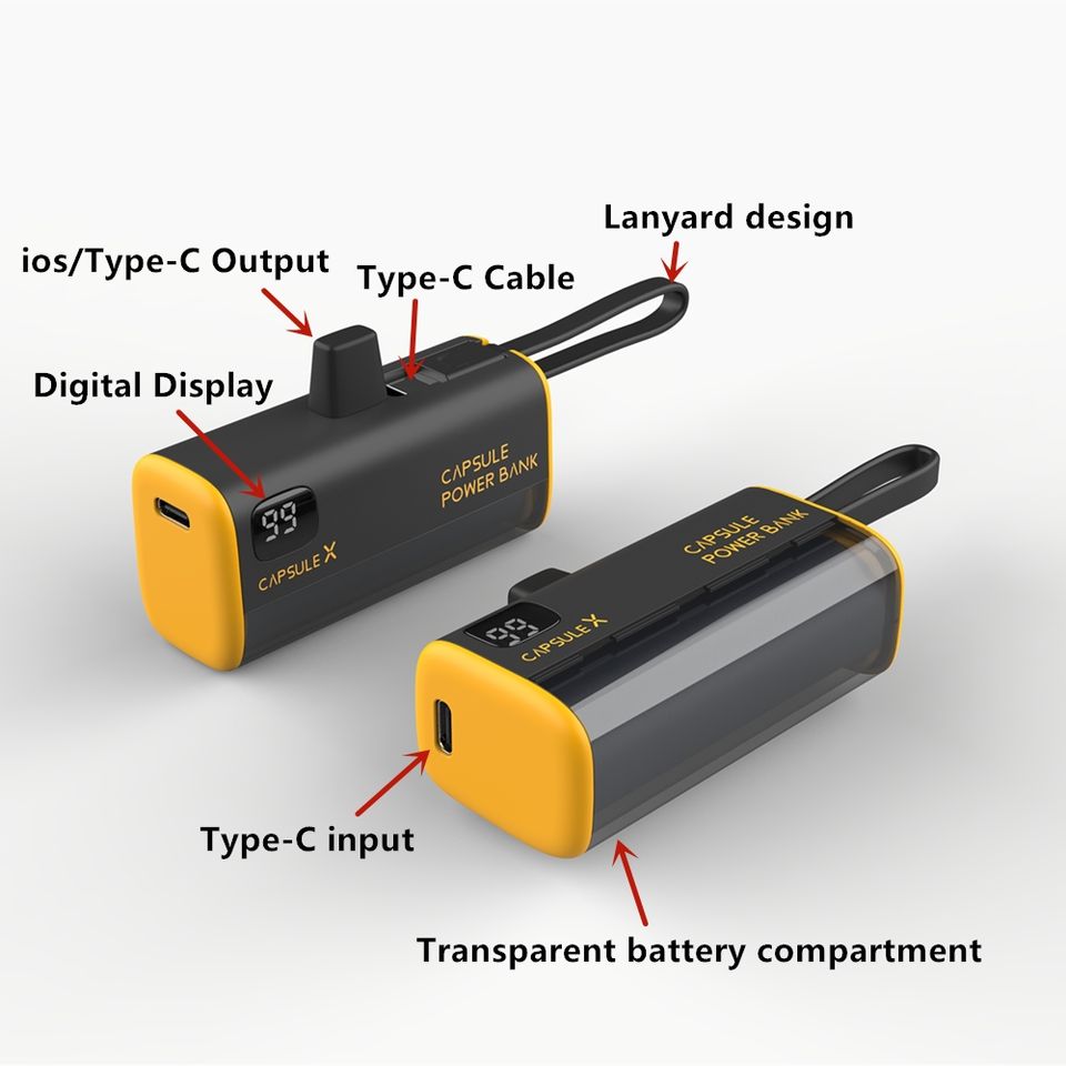 Product name:Mini Emergency Charger 5000mah Capsule Power Bank with Cable