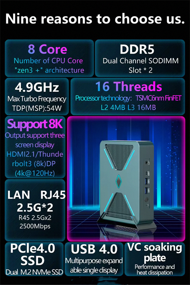 Mini PC de jeu 2025, processeur Core i9 13900F 24 cœurs, RTX4070 12G, RTX4060Ti 8G, ordinateur de bureau micro, 1xHD2.1, 3xDP, Win11 Pro, PC Gamer