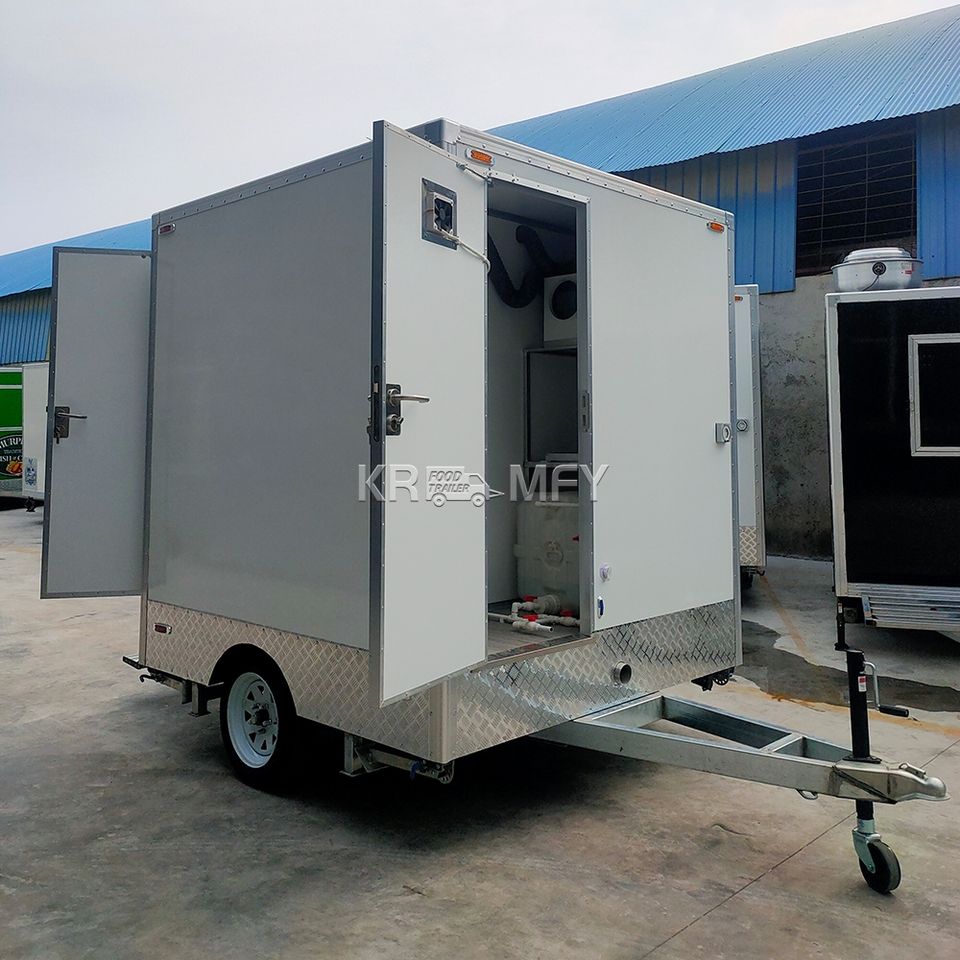 Mobile moderne 2025 avec douche, toilettes mobiles, salle de bain, remorque