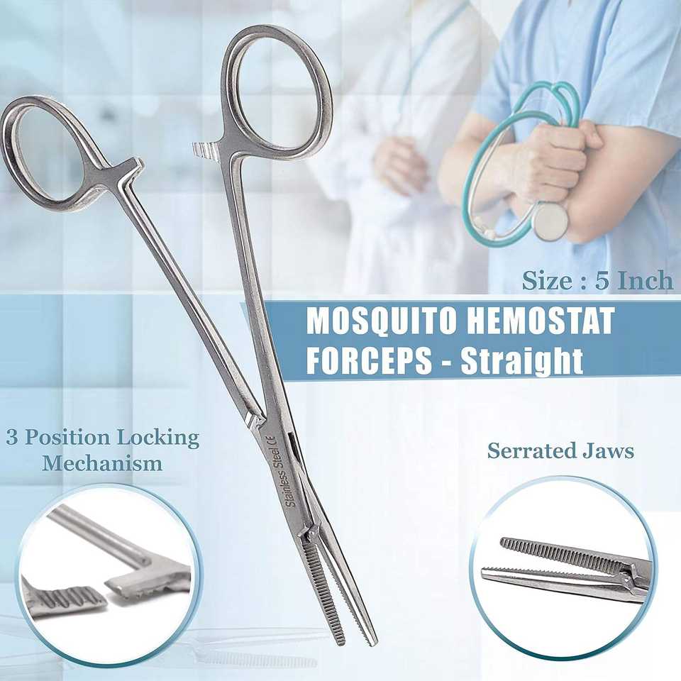 Modèle 2025 FENTEX Mosquito Hemostat Pince à blocage en acier inoxydable 5 mm à mâchoires droites entièrement dentées Instrument chirurgical pour nerfs
