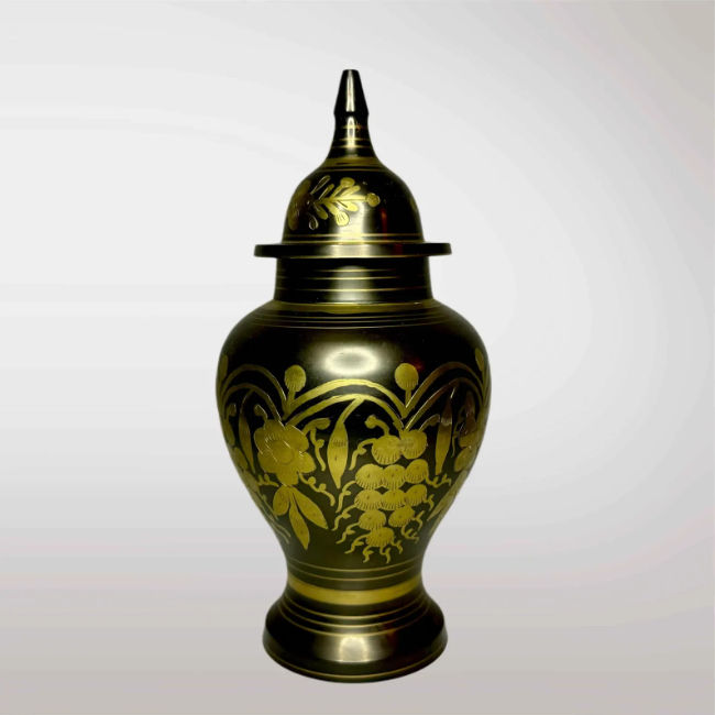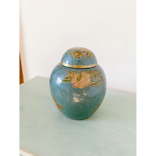 Autocollant en émail moderne fait à la main en aluminium de couleur bleue avec un motif de feuille, appliqué sur un pot à gingembre pour la décoration de la maison, occasion de mariage